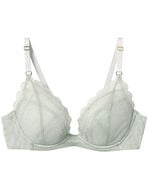 ・カップ上辺から脇のバック布にかけてレースをあしらった三角ブラ風の軽やかなデザイン。