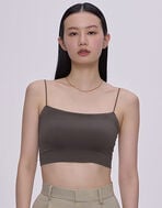 トップスと下着の役割を1枚で叶えるカップ付きのショートキャミソール。