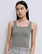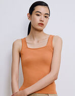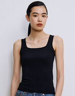 1枚でも、シャツなどと重ねても着回しやすいスクエアカットのカップ付きタンクトップ。
