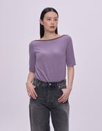 袖は二の腕が気になりにくい5分丈で、春先から長く楽しめるアイテム。