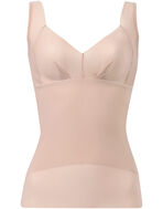 「おなかも背中も気になるけど、苦しいのは苦手だし、シェイパーを着るのはめんどう」という方におすすめ。タテ・ヨコによく伸びてしっかり戻る素材で、からだの動きや体型に対応して、がんばらなくてもボディラインをすっきりシェイプ。気になる脇やウエストまわりは裏打ちでしっかりととのえられるのに、極細繊維を高密度で編み上げたやわらかくふんわりソフトな風合いで、キャミやインナー感覚で気軽に着脱できます。身生地部と裏打ちには、汗をかいてもさらっと快適な吸汗速乾素材を使用。いつものブラの上に着るだけで、脇・ウエストまわり・背中をすっきりスムージングできるので、おしゃれが楽しくなりそう。
