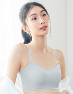 「ブラジャーのしめつけが苦手」という方におすすめのハーフトップ。裏打ちのアンダーバスト部分はゴムをなくし圧迫感を軽減します。また、背中部分の裏打ちには接触冷感性のある素材を使用し、汗が気になる背中もひんやりさわやかです。身生地部には古着や裁断くずを再生したリサイクルポリエステルを使用。薄くて伸びがよく快適なつけごこちです。シンプルなフォルムが際立つ、スタイリッシュなストラップタイプ。デイリーユースはもちろん、ウォーキングやヨガ、ピラティスなど軽運動にもぴったりです。
