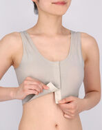 肩や腕が上がりにくく、背中に手をまわさず簡単に着脱をしたい方に。着脱がラクな前あきタイプで、授乳時や入院時、介護時、手術前後など肩や腕が上がりにくいときもラクに着脱ができるデザインです。身生地部はムレにくく、静電気が起こりにくい綿混素材。脇接ぎやアームホールなどで肌側の縫い目をできるだけ少なくしやさしい着用感にこだわりました。