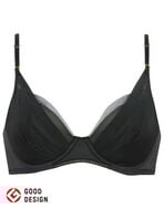 フロント下部の「体温で変形する樹脂シート」がバストの位置に合わせて伸縮して、ここちよくフィット
