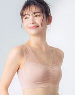 やさしいつけごこちで睡眠中のバストの脇流れを防ぐ夜用のブラを、日中のくつろぎタイムにも楽しみたい方へ。カップ脇部分の編み立てを切り替えることで、就寝中はもちろん、ゆったりおうちでくつろぐバストを脇流れからやさしくサポート。よく伸びる編み立て成型のアンダーテープレス仕様なので、肌あたりもやさしく軽いつけごこち。取りはずし可能な一体型のウレタンパッドを挿入しているのでバストトップがひびきにくく、日中のリラックスタイムも立体的なバストシルエットにととのえます。