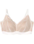 軽いつけごこちとナチュラルなバストシルエットでおうちで過ごすときも外出時も使いやすいノンワイヤーブラ。肌側は縫い目を減らしたフラット仕上げなので、肌と一体化して吸いつくようなフィット感です。圧迫感の少ない快適なつけごこちで「ブラジャーのしめつけが苦手」「バストはきれいに見せたいけど、とにかくラクなつけごこちがいい」という方におすすめ。スタイリッシュなレースデザインや華やかなプリントなど、気分や好みに合わせて選べる多彩なカラーバリエーションもポイントです。
