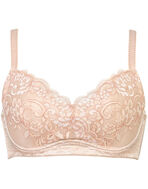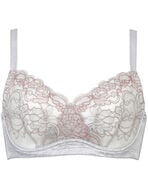 大きなバストが気になる方や、バストの高さと脇をおさえてすっきり服を着こなしたい時におすすめ。カシュクール構造のデザインでバストを左右からやさしく包みこみ、フロントシートでそっと高さをおさえてコンパクトにバストメイク。L字ワイヤーで前中心の圧迫感を軽減。汗がたまりやすいカップ肌側や前中心の裏打ち、ワイヤーループには吸汗速乾素材を使い、さらっと快適なつけごこちに。バストを目立たせたくない日を、ここちよくサポートします。