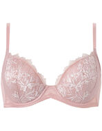 ワイヤーブラでしっかりバストシルエットをメイクしたい方にも、つけていることを忘れるくらい軽いつけごこちを。肌あたりのソフトな綿混素材に、軽く伸びやかなメッシュ素材を組み合わせて、ふんわりエアリーな着用感。カップ下の台布をVカットにすることで圧迫感を軽減。気分までふんわりアップさせてくれる、軽やかなつけごこちのブラジャーです。バストサイドに脇布をあしらい、すっきりとしたデザインに仕上げました。