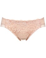 小さく見せるブラ(KB6100)シリーズとペアコーデが楽しめるショーツ。身生地部にはフィット性がよくソフトな風合いの素材を、ウエストと前裾には伸びのよいテープを使い、やさしいはきごこちにこだわりました。バック裾には繊細なストレッチレースをあしらい、アウターにひびきにくい仕様に。ベーシックカラーの上品なレース使いで、デイリーショーツにちょうどいい華やぎに仕上げました。