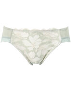 もちっとふわっとブラ(KB2368)シリーズとペアコーデが楽しめるショーツ。身生地部にはフィット性がよくソフトな風合いの綿混素材を、ウエストと前裾には伸びのよいテープを使い、やさしいはきごこちにこだわりました。バック裾には繊細なストレッチレースをあしらい、アウターにひびきにくい仕様に。フロントにレースをあしらった華やかなデザインです。