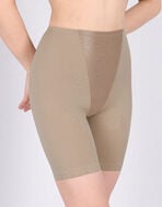 おなかもヒップもきちんとスタイルアップしたいけど、ガードルは窮屈そうで苦手という方へ。タテ・ヨコに伸びる薄手でなめらかな素材を、パワー強弱を切り替えて編み立てることで、おなかをラクに押さえて、ヒップのまるみをキープ。太もも前側は切り替えて、裾がズレ上がりにくい設計に。動くことでヒップ上下のメッシュ部分から熱や湿気を逃がすエアースルー機能をプラスして、ムレを軽減しました。メリハリシルエットを一枚ばきですっきり、しめつけ感やムレを気にせず快適に楽しんで。