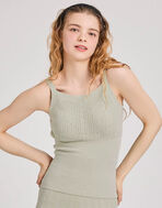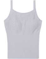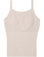 ・かぎ編み調の編み柄が柔らかな肌ざわりとマッチしたデザインのカップ付きキャミソール。