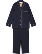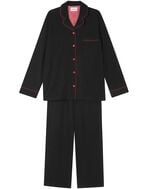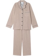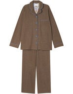 ふんわりとやわらかな綿混のパイル生地を使用した開襟シャツの長袖パジャマ。