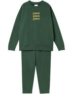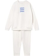 睡眠を表現するフレーズを大胆にプリントや刺繍で表現しました。