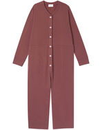 カジュアルなスタイルがかわいい、全身をすっぽり包み込むオールインワンタイプのパジャマ。