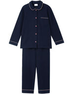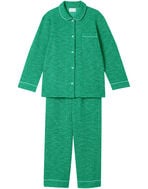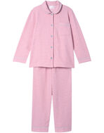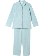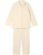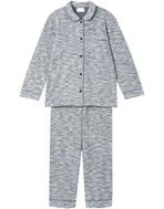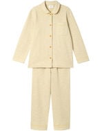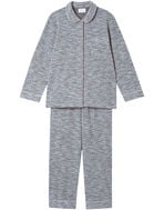 綿混素材のツイード生地を使用した長袖の開襟パジャマ。