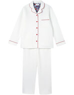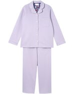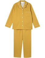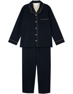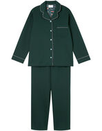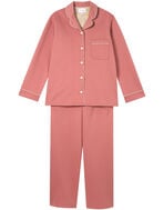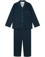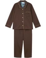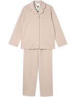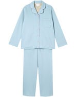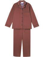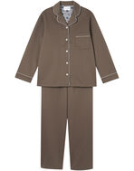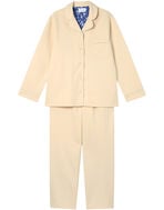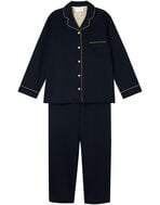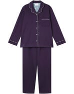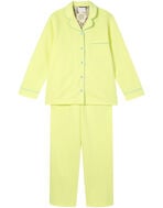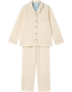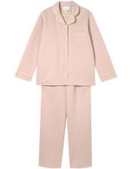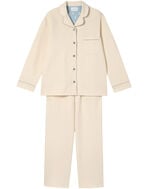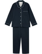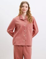 綿混のダンボールニット生地を使用した長袖の開襟パジャマ。