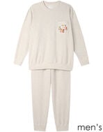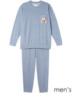 馬が9頭、まるっと円陣を組んでいる柄をワンポイントで刺繍をしたメンズパジャマ。