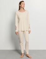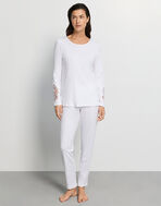 袖にレースがあしらわれ、ディテールにまでHANROのこだわりがつまった、コットン好きの方のためのパジャマ