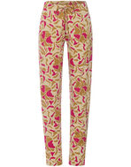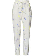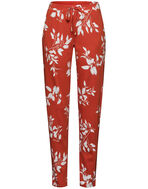 テーパードシルエットで、ウエスト紐とスラッシュポケット付き
