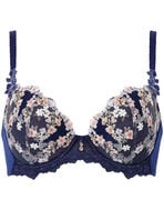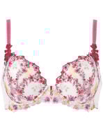 胸もとにふんわり、祝祭のフラワーアーチが咲き誇るラグジュアリーなデザイン。プリントレースに色とりどりの刺繍レースとアップリケを咲かせたカラフルなタイプや、可憐な小花モチーフを引き立てる無地レースタイプなど、春のガーデンを多彩に表現しました。胸もとをふっくら自然なまるみにバストメイクするカップ設計なので、くっきりバストが目立つのが苦手な方にもおすすめ。バック素材もなめらかで肌ざわりがよく、香り立つようなレースの華やぎを、やさしいつけごこちとともに楽しめます。