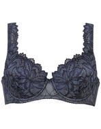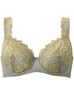 ●やさしいフィット感 幅広の肩レースと深めのカップで、バストをホールドして自然なバストラインに