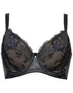 ●安定した着用感 バストをしっかり包みこむフルカップ。上辺のストレッチレースには、肌側に胸なじみのよいゴムを採用