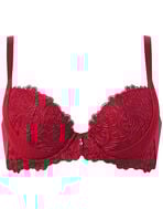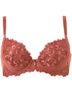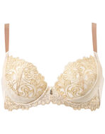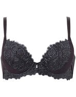 立体的なステッチが目を引くアラベスク調モチーフの刺繍がエレガント。レースを贅沢にあしらい、シンプルなチュールと組み合わせてクラシカルなムードが漂うインポートライクなデザインに仕上げました。“着やせ&寄せ上げ”のダブル機能を採用しているので、気になる脇部分はシェイプして着やせシルエットに。バストは高い位置にキープしながら谷間をメイク。アウターをすっきりキレイに着こなしたいときにおすすめです。