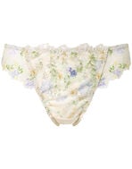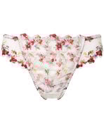 ブラ(PB2120)シリーズとのペアコーデが楽しめる、華やかなTバックショーツ。春の訪れを祝福するフラワーアーチを、刺繍レースやアップリケでふんだんに咲かせたラグジュアリーなデザイン。通常のTバックショーツよりバックのかぶりを広めにしているので、Tバックショーツ初心者の方にもおすすめ。フロントは透け防止の裏打ち付き、バックはレースの上品なシアー感で軽やかな華やぎに仕上げました。