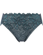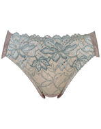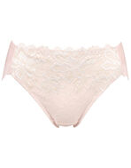 ブラ(PB3010)とペアコーデが楽しめる華やかなショーツ。お花にパールをちりばめたようなワントーンカラーの上品なレースデザインと軽やかで繊細なレースデザインの2種類がラインアップ。気分に合わせて選べます。フロント部には、環境に配慮したリサイクルナイロンのレースを使用し、身生地部には、よく伸びるオーガニックコットン混素材を使い、やさしいはきごこちに仕上げました。華やぎもリラックスも満たされたい日におすすめです。