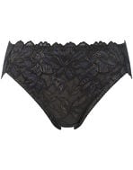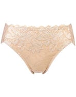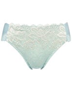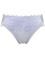 ブラ(PB3010)とペアコーデが楽しめる華やかなショーツ。お花にパールをちりばめたようなワントーンカラーの上品なレースデザインが贅沢。フロント部には、環境に配慮したリサイクルナイロンのレースを使用し、身生地部には、よく伸びるオーガニックコットン混素材を使い、やさしいはきごこちに仕上げました。華やぎもリラックスも満たされたい日におすすめです。