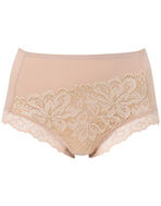 ブラ(PB3010)とペアコーデが楽しめる華やかなショーツ。お花にパールをちりばめたようなワントーンカラーの上品なレースデザインが贅沢。フロントには、環境に配慮したリサイクルナイロンのレースをあしらい、身生地には、よく伸びるオーガニックコットン混素材を使い、やさしいはきごこちに仕上げました。華やぎもリラックスも満たされたい日におすすめです。