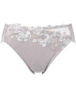 ブラ(PB5010)とのペアコーデが楽しめる華やかなショーツ。フロントに刺繍レースの花を上品に咲かせたラグジュアリーなデザイン。身生地部には、よく伸びるオーガニックコットン混素材を使い、フロントには綿混素材の透け防止の裏打ちをほどこし、ほどよいフィット感に仕上げました。華やぎもリラックスも満たしてくれる、毎日のお気に入りに。