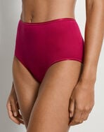シルケット加工をほどこした、光沢感のある綿100%(身生地)のショーツで、はきこみ丈はふかめ。