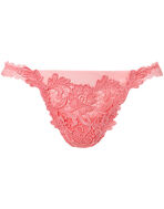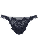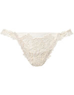 ポーランドの民芸切り絵から着想を得たケミカルレースが華やかなシリーズ。サイドからバックにかけて繊細なリバーレースを使用した、可憐で華奢な印象のショーツです。美しい刺繍のモチーフが素肌に浮き立つセンシュアルなデザイン。レースはこだわりのステッチでくっきりとした輪郭線を際立たせ、立体感を演出しました。透明感のあるチュールと洗練されたレースのバランスが絶妙で、すっきりとしたフロントの優美さを引き立てます。
