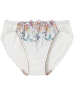 ●フロントにエンブロイダリーレースをあしらったショーツ。