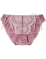 ●フロントにレースをあしらい、バックにはラッセルレースをあしらった華やかなショーツ。