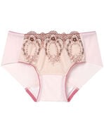 ●フロントはレースをあしらい、裏打ち付きで透けにくい、サニタリーショーツ。