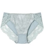 ●フロントは華やかなレースをあしらい、裏打ち付きで透けにくいショーツ。