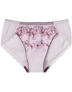 ●フロントにレースをあしらい、裏打ち付きで透けにくい、使いやすいショーツ。