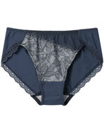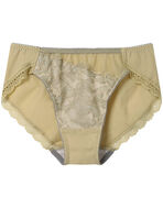 ●フロントにレースをあしらい、裏打ち付きで透けにくい、使いやすいショーツ。