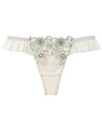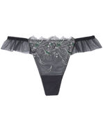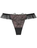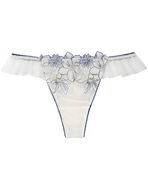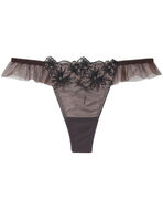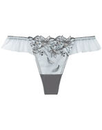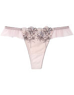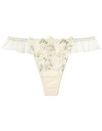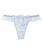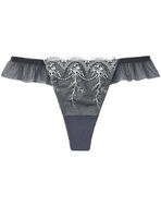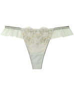 ●フロントにレースをあしらい、ウエストはチュールで軽やかに仕上げたデザインのソング。