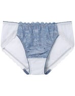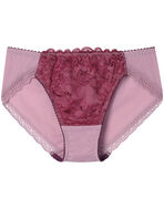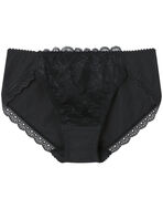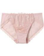 ●フロントにレースをあしらい、裏打ち付きで透けにくく、使いやすいショーツ。