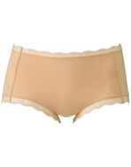 動くとショーツの裾がズレ上がって気になる…。そんな方におすすめしたい「すそピタショーツ」。おしりをすっぽりと包みこみ、裾がズレ上がりにくい設計になっています。はきこみ丈はふつうでナチュラルな安心感。肌あたりがやさしい綿混素材で、デイリーに使用できます。