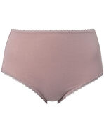 ソフトなフィット感がここちよい定番の綿混ショーツ。はきこみ丈ふかめですっぽりとウエストまで包みこみます。クロッチ部分には縫い目をなくし、肌あたりがやさしい仕様に。クロッチ肌側には綿混のパイルを使用することで、快適なはきごこちに仕上げました。シンプルなデザインで、さまざまなブラジャーとあわせやすいところも魅力。大切な方へのギフトにもおすすめです。