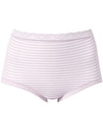 さわやかな素材と安心感のあるはきごこちの定番ショーツ。はきこみ丈ふかめですっぽりとウエストまで包みこみます。脇接ぎがなく、ストッキングやガードルを重ねても縫い目があたりにくい仕様。汗をかいても乾きやすく、さらっとした着用感が魅力です。ポップなボーダー柄とカジュアルなカラーリングが気分を明るくするキュートなデザイン。大切な方へのプレゼントにもおすすめです。