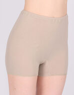 シンプルならではのよさが感じられるショーツ。オーガニックコットン100%のため、肌あたりがやさしく、ここちよい着用感。抗菌防臭性と通気性もあり、シーズンを通しての着用が可能です。ボーイレングスショーツ着用時に気になりやすい脚まわりのショーツラインも、裾をフラットな仕様にしアウターにひびきにくく。素材を生かしたシンプルなデザインはさまざまなコーディネイトと好相性です。