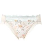 「小さく見せるブラ(BRB453)」とペアコーデが楽しめるショーツ。あさめのはきこみ丈で、すっきりとした印象です。可憐な花々をモチーフにしたレースが愛らしいロマンティックなデザイン。