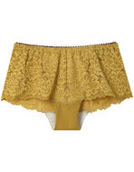 ●マリーゴールドの花をモチーフにした再生糸のストレッチレースを全面に使用した、華やかな印象のショーツ。