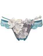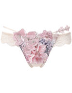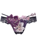 自然をモチーフにした優雅な曲線と、透明感がある豊かな色彩の調和がロマンティック。花々が重なり合う様子をナチュラルにデザインすることで、咲き誇る花の美しさを表現。アネモネをイメージした繊細なアップリケの花びらには、上品な輝きを放つスワロフスキー・クリスタルをあしらいました。左側のサイドループにほどこされたアップリケが可憐なアクセントとなる華やかな一枚です。
